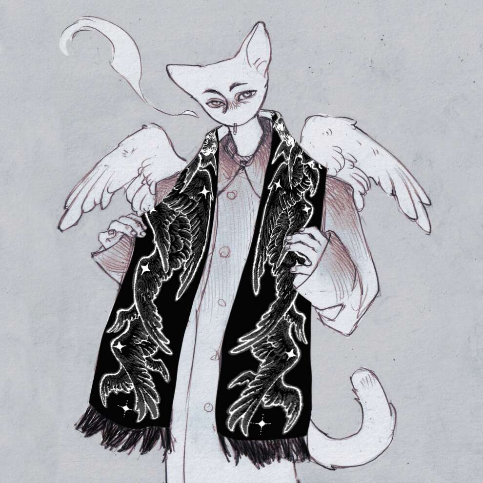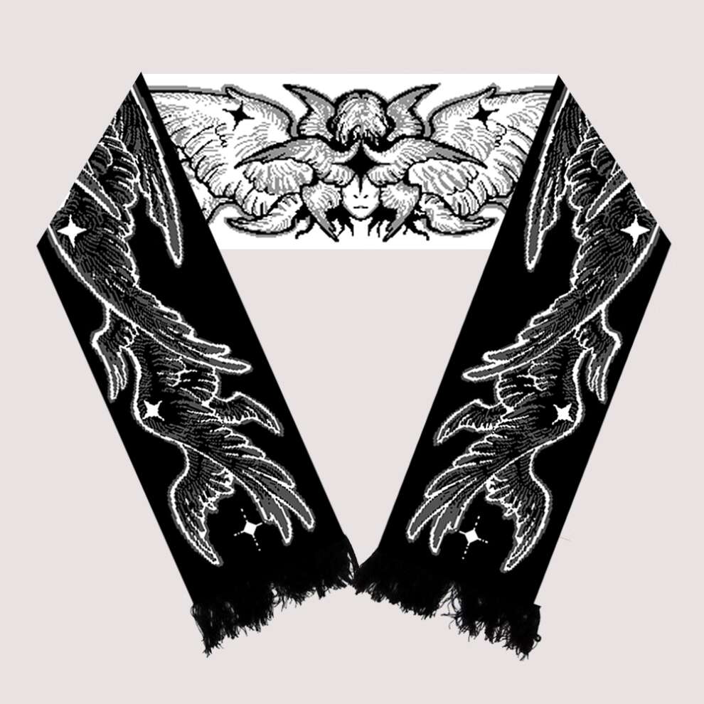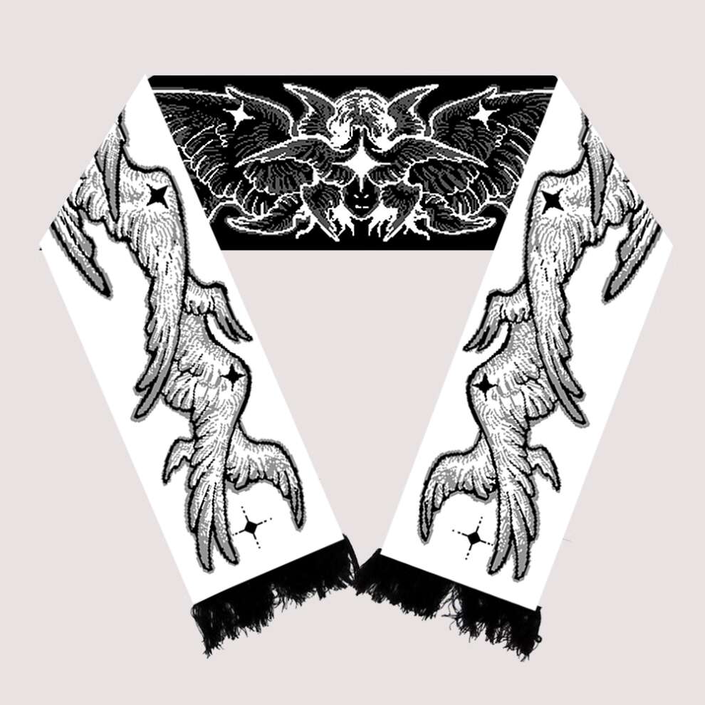 Reversible, with a white angel on one side and a black one on the other